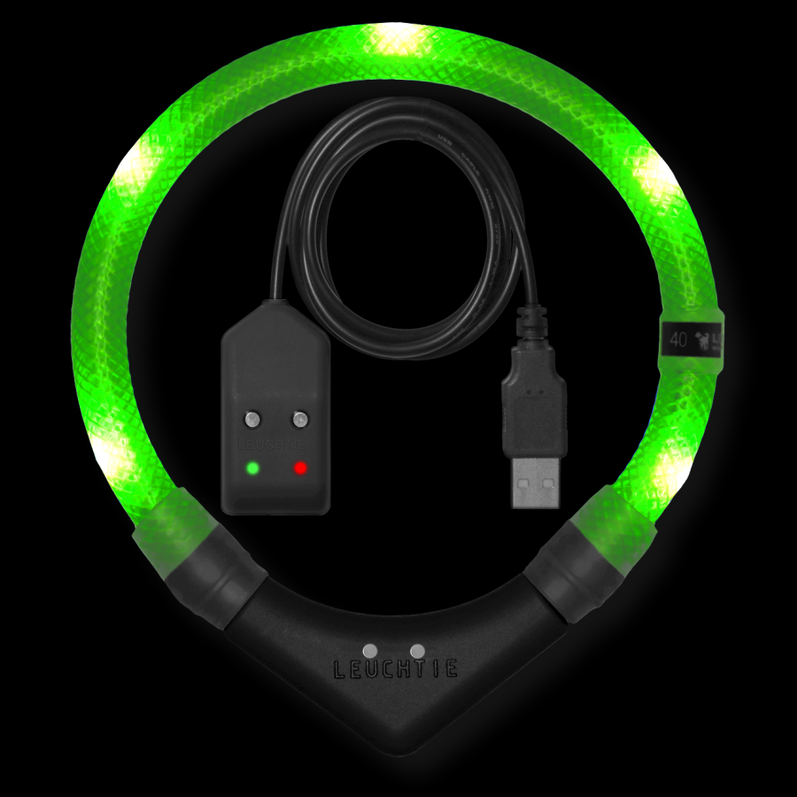 LED Light dog collar LEUCHTIE Easy Charge USB magnetic sensor neon green 50 cm